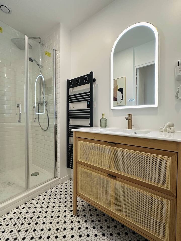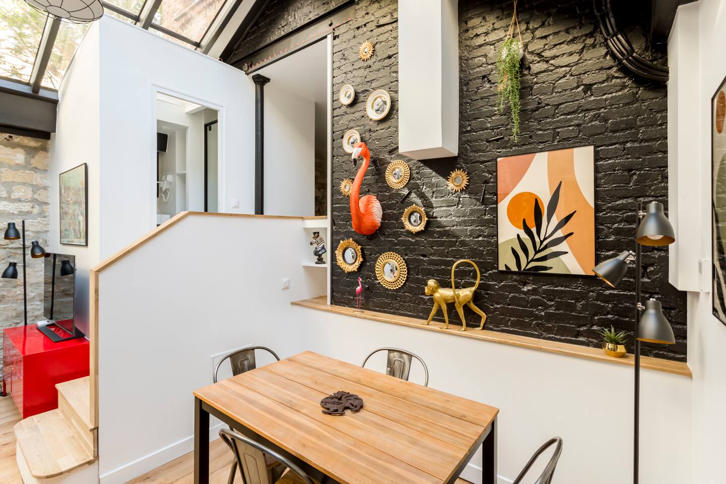 Welcome to our charming town house, ideally located just minutes from the Eiffel Tower, Les Invalides, and Rue du Commerce. This spacious 160m² (1,700 sq ft) private space spans three floors and an annex beneath a stunning glass roof, offering a rare blend of comfort, natural light, and authentic Parisian charm. The three independent family suites, each occupying an entire floor (40m²), offer privacy and comfort. Each suite includes a queen-size bed (160cm), a queen-size sofa bed (160cm), a fully equipped kitchen, a private dining area, a laundry space, and a bathroom with a shower and separate restroom. Overlooking the peaceful interior courtyard, they guarantee a quiet and restful stay in each bedroom. Originally a 19th-century coaching inn, our home combines classic Parisian architecture with modern comforts, including air conditioning throughout. The second floor features a cozy living room with exposed wooden beams, a hallmark of traditional Parisian apartments. The first floor boasts elegant wall moldings, adding a touch of French refinement. One of the highlights of our home is the atelier, once the painting studio of artist Renée Cullère. Nestled beneath a renovated glass roof, this rare space is flooded with natural light while benefiting from thermal and acoustic insulation for absolute comfort. The exposed stone wall adds to its artistic and historical character, making it a truly unique place to stay. Our pop-style suite is inspired by pop-art, with vibrant colors and playful decor. It features a Murphy bed (double 140cm) and a whirlpool tub. The high ceilings and zenithal light enhance the sense of space during the day, while colored lighting transforms the ambiance in the evening, creating a cozy and artistic atmosphere. For gathering moments, enjoy a beautiful dining room that seats up to 14 guests. It also features a comfortable 4-meter sofa, perfect for relaxing while watching a film on the Dolby Atmos projection screen for a truly immersive cinema experience. A gym with sauna, water rower, and TechnoGym bench awaits you in a charming vaulted cellar with exposed stonework, open daily from 8 AM to 11 PM—a peaceful retreat from the city’s energy. The house is fully equipped with high-speed Wi-Fi, TVs with streaming apps, and laundry facilities in each family suite. With a single access code for all suites, moving between spaces via the shared staircase is effortless, allowing you to enjoy time together in the suites or in the common areas.